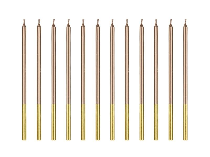 Świeczki urodzinowe gładkie w kolorze różowego złota, wysokość ok. 14 cm. Zestaw zawiera 12 świeczek.(1 op. / 12 szt.) przeczytaj całość