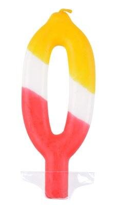 Świeczka urodzinowa w kształcie cyferki wykonana z trójkolorowego wosku: czerwonego, białego i żółtego. Wysokość świeczki 10,5 cm. przeczytaj całość