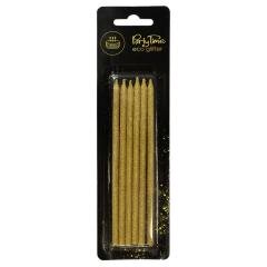 Świeczki urodzinowe w kolorze złotym, pokryte połyskującym eko-brokatem, to idealny dodatek do każdej imprezy urodzinowej, wesela czy innego wyjątkowego wydarzenia. Wykonane z myślą o środowisku, te świeczki dodają blasku każdej dekoracji tortu. Ich elegancki wygląd w połączeniu z drobinkami...