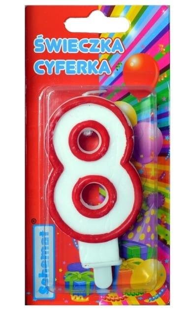 Świeczka - cyferka 8.Podstawka z tworzywa sztucznego ułatwia ustawianie świeczek . przeczytaj całość