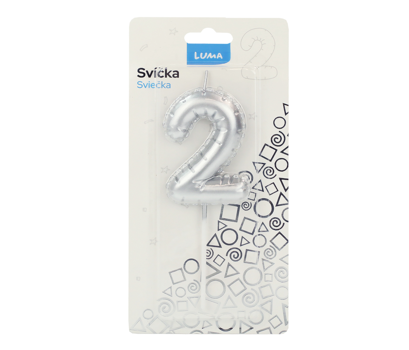 Svíčka č. 2 balónek STŘÍBRNÝ LUMA