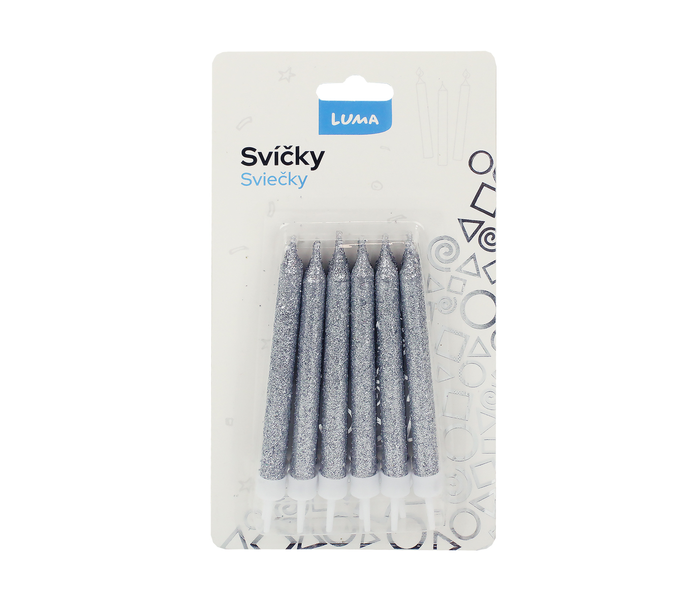 včetně stojánku na zapíchnutí- 12ks v balení- barva: stříbrná s glitrem- průměr: 7,4mm- výška 78mm przeczytaj całość