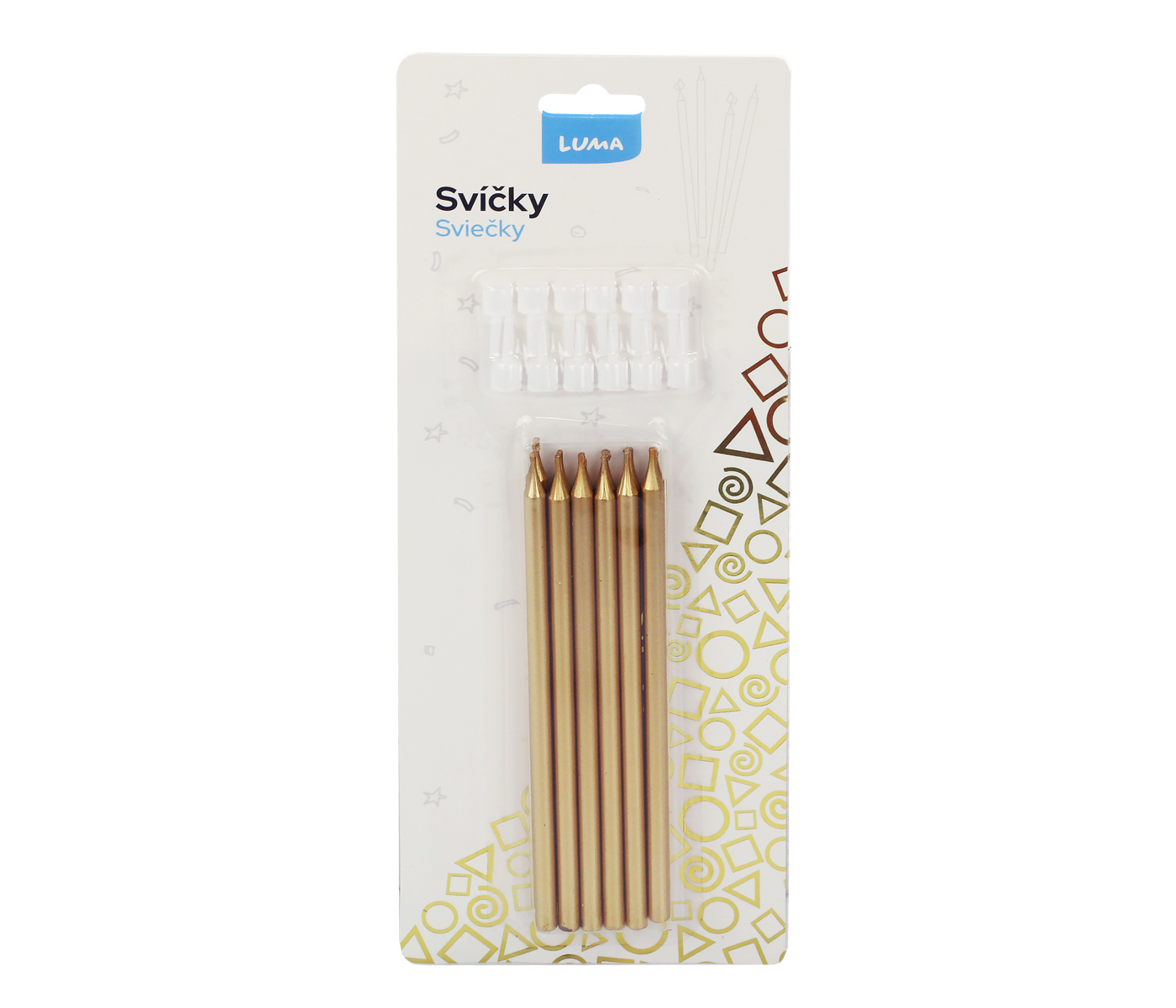 včetně stojánku na zapíchnutí- 12ks v balení- barva: zlatá- průměr: 5,5mm- výška: 125mm przeczytaj całość