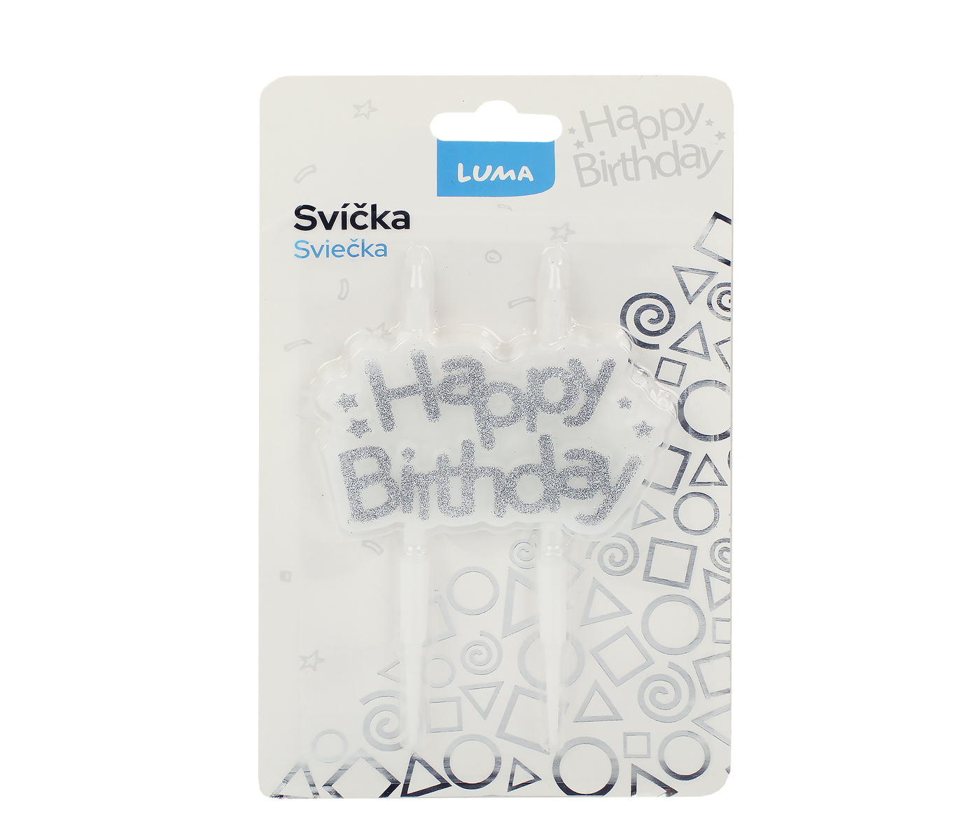Svíčka HAPPY BIRTHDAY stříbrná LUMA