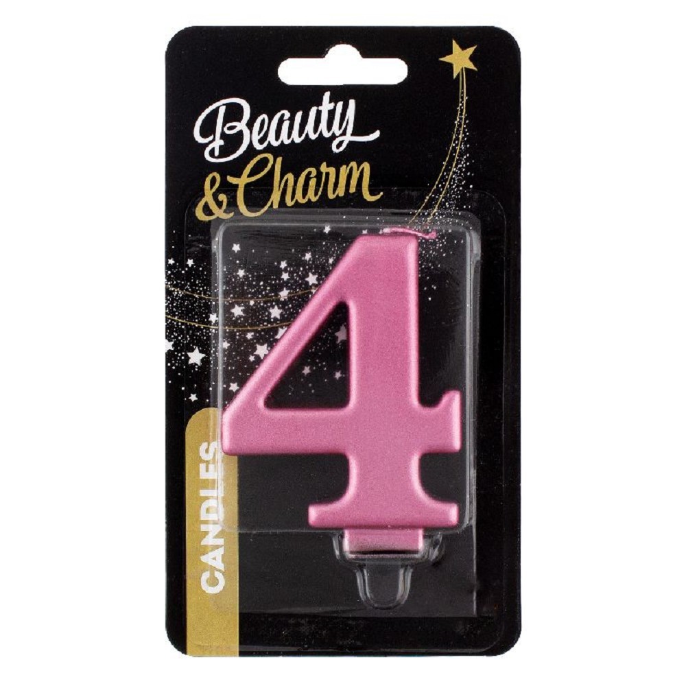 Elegantní doplněk na glamour party! Spojte dětskou radost ze svíček na dortu s dospělou a elegantní verzí večírku! Svíčka bude ideální pro všechny druhy výročí, firemníakce a všude tam, kde lze číslice použít k vytvoření čísla nebo roku s číslem čtyři v růžové metalické barvě.