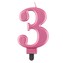 Elegantní doplněk na glamour party! Spojte dětskou radost ze svíček na dortu s dospělou a elegantní verzí večírku! Svíčka bude ideální pro všechny druhy výročí, firemníakce a všude tam, kde lze číslice použít k vytvoření čísla nebo roku s číslem tři v růžové metalické barvě.