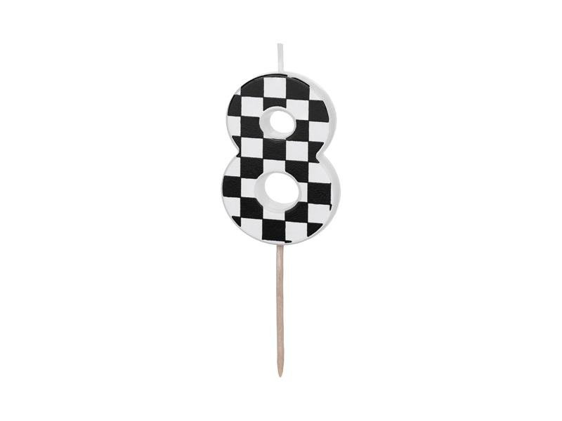Świeczka urodzinowa Cyferka 8 ze wzorem szachownicy, rozmiar ok. 5.5 cm. przeczytaj całość