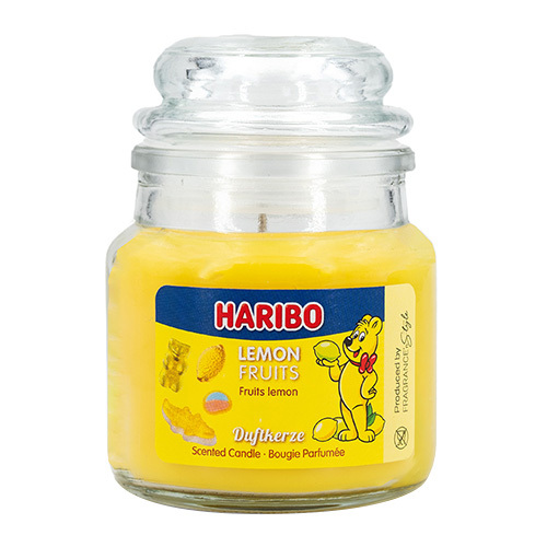 Svíčka ve skleněné dóze Haribo, Citronové ovoce, 85 g