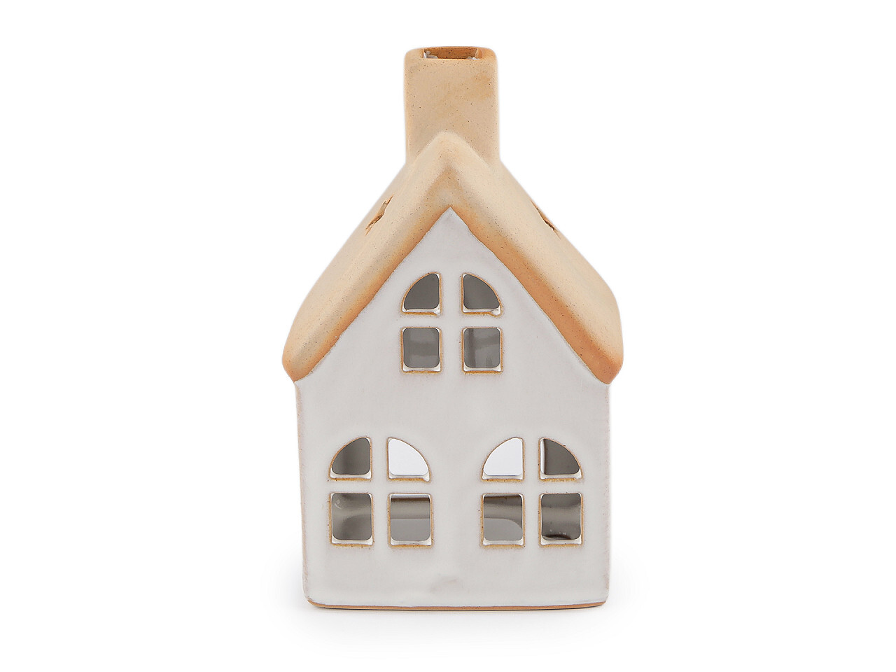 Keramická chaloupka / domeček na svíčku - 1 ks - 1 bílá béžová