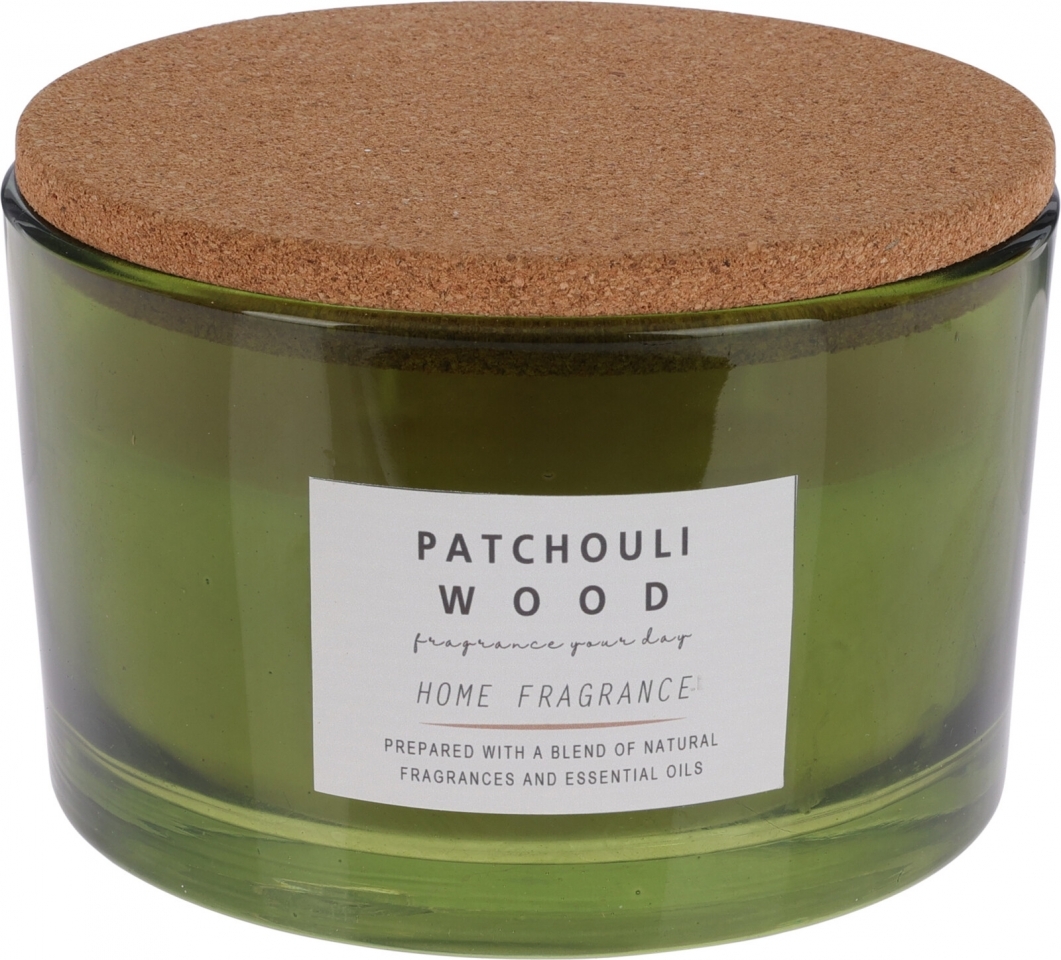 3 knotová vonná svíčka ve skle s korkovým víčkem, zelené sklo 8x13 cm