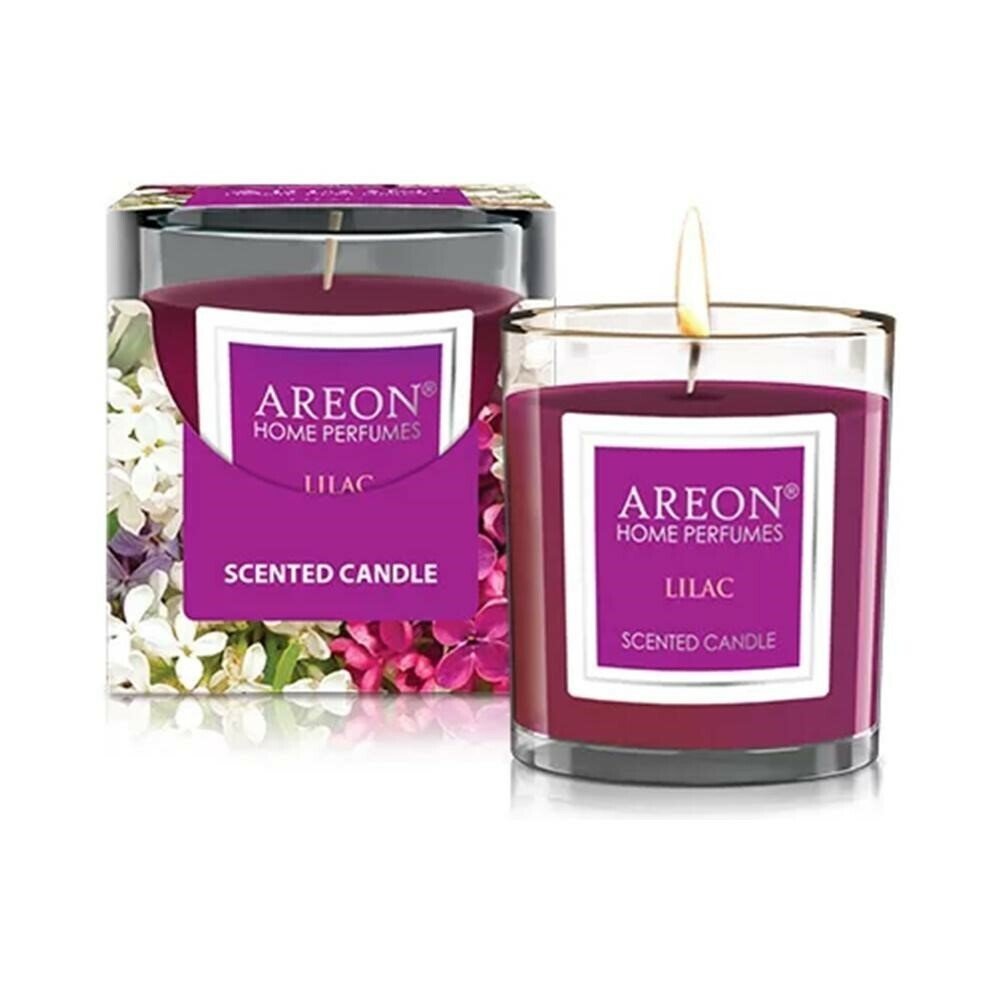 Zapachowa świeca Areon Lilac 120 g z niepowtarzalnymi perfumami Areon, odpowiednia do każdego pomieszczenia, które wypełni kwiatowo-słodkim zapachem z nutami bzu.