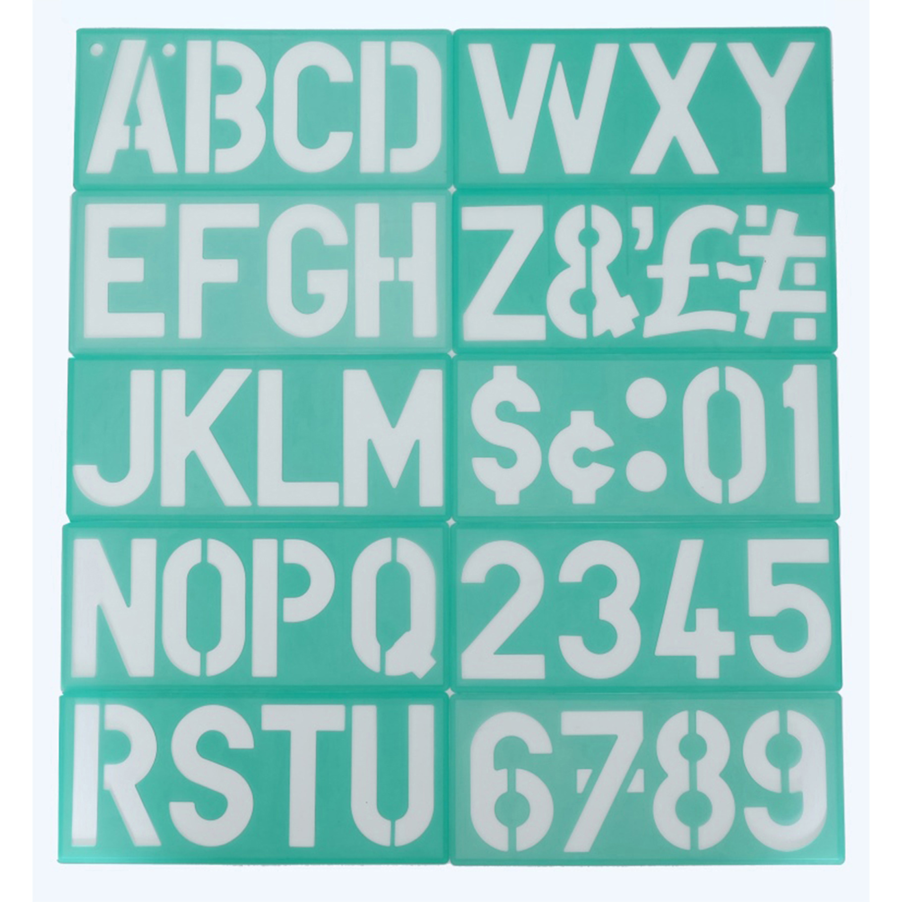 Szablon zawiera duże i małe litery oraz cyfry od 0 do 9 o wysokości znaku 100 mm, co czyni go odpowiednim do użytku w domu, w szkole lub w biurze. Dzięki temu łatwo oznaczysz dokumenty, tablice lub wykonasz przyciągające uwagę napisy do różnych zastosowań, zarówno prywatnych, jak i profesjonalnych.