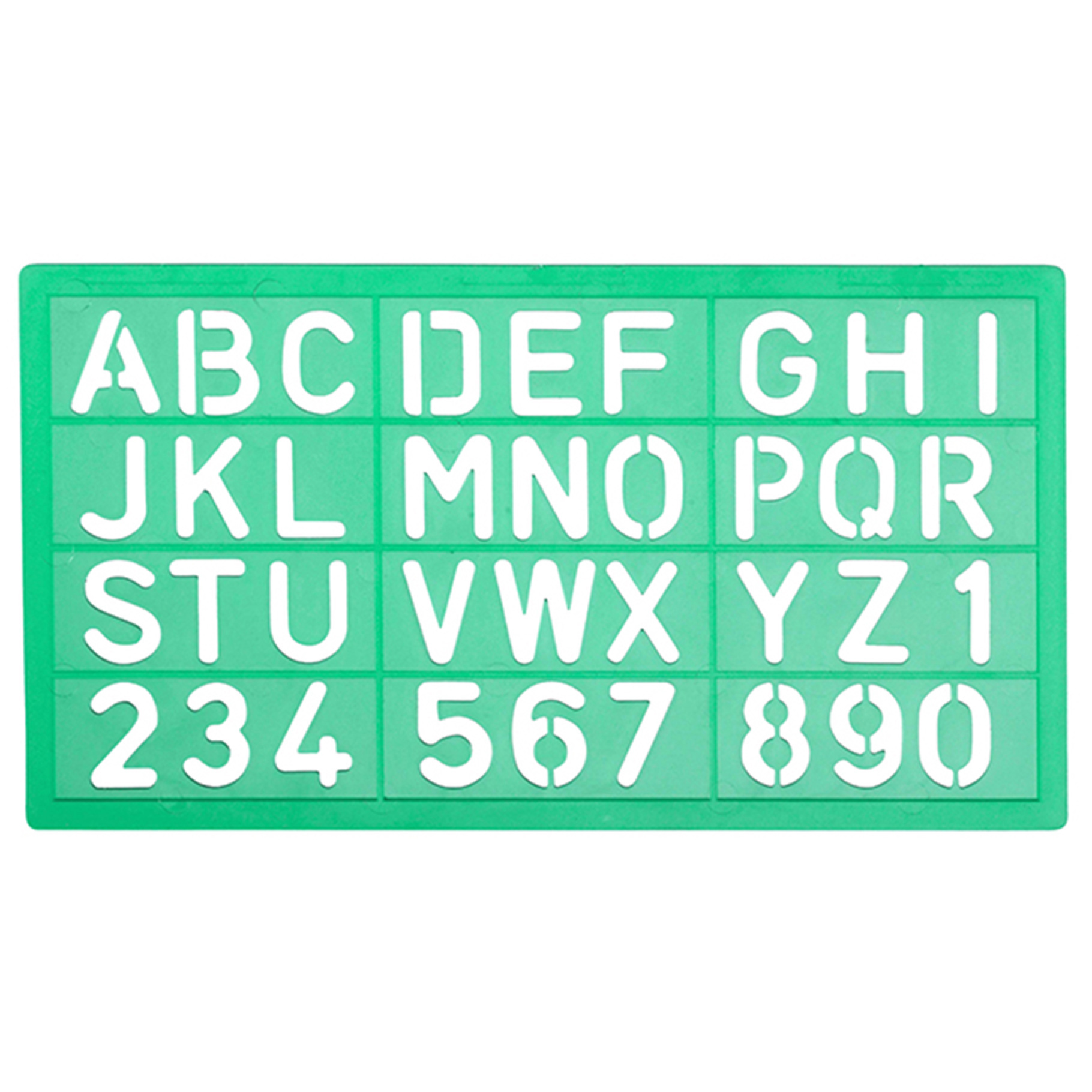 Szablon z dużymi literami, cyframi i symbolami. Do użytku w domu, w szkole lub w biurze. Wysokość liter 30 mm. przeczytaj całość