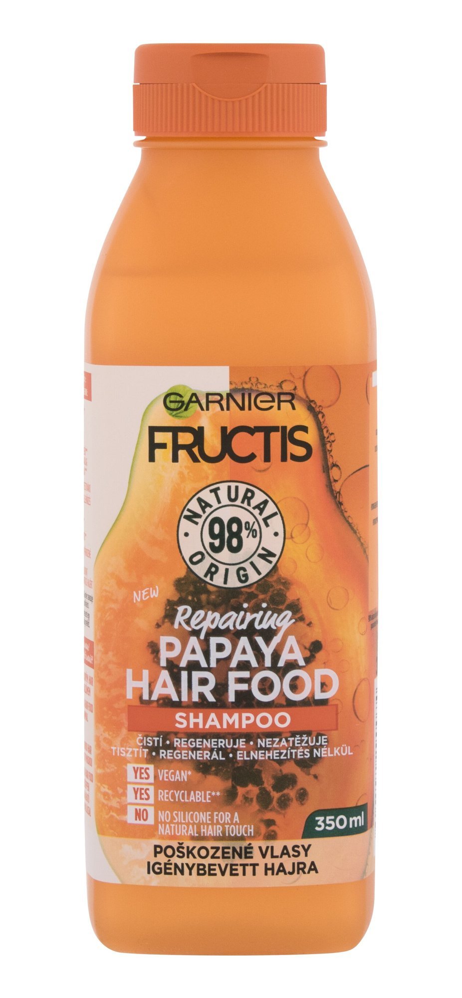 Garnier Fructis představuje svůj první veganský Hair Food šampon Papaya s 98% přírodním složením. Jeho lehká pěna šetrně myje a hydratuje vaše vlasy. Jeho účinné látky intenzivně regenerují vlasy a dodávají jim zdravý vzhled. Pokud máte poškozené vlasy, tento šampon je určen přímo pro vás.