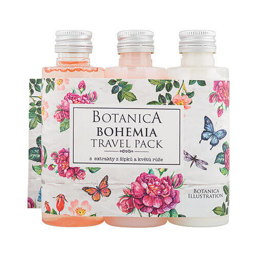 Travel pack - cestovní balení kosmetiky s etrakty z šípku a růžeCestovní kosmetické balení vhodné pro cestování, které můžete vzít s sebou do letadla a projdete kontrolou.Botanica Bohemia - krémový sprchový gel s extrakty z šípků a květů růže 75 ml. Jemný přípravek osobní hygieny vhodný k mytí...