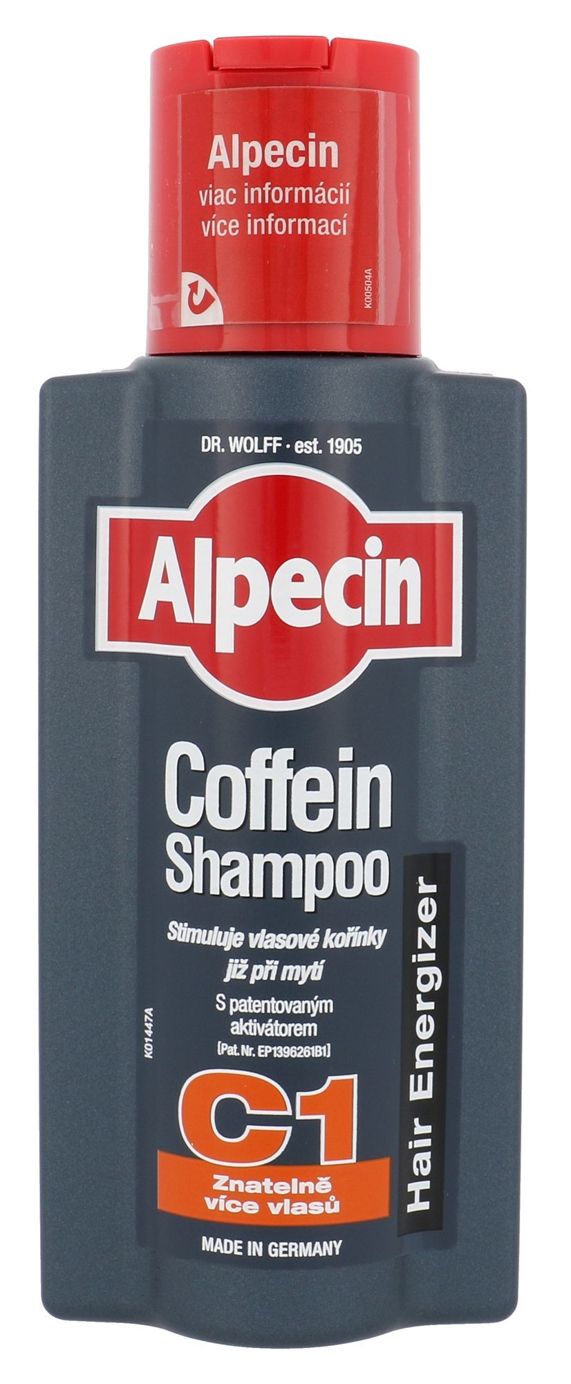 Szampon **Coffein Shampoo C1** do stymulacji wzrostu włosów. Szampon Coffein Shampoo C1 zawiera kofeinę, która wspomaga wzrost włosów i spowalnia dziedziczne wypadanie włosów. Kofeina przenika aż do cebulek włosowych nawet po spłukaniu szamponu. **Sposób użycia**: Nałóż na mokre włosy. Pozostaw na 2 minuty, a następnie dokładnie spłucz. Jeśli pozostawisz szampon dłużej, kofeina dostanie się również do skóry głowy.
