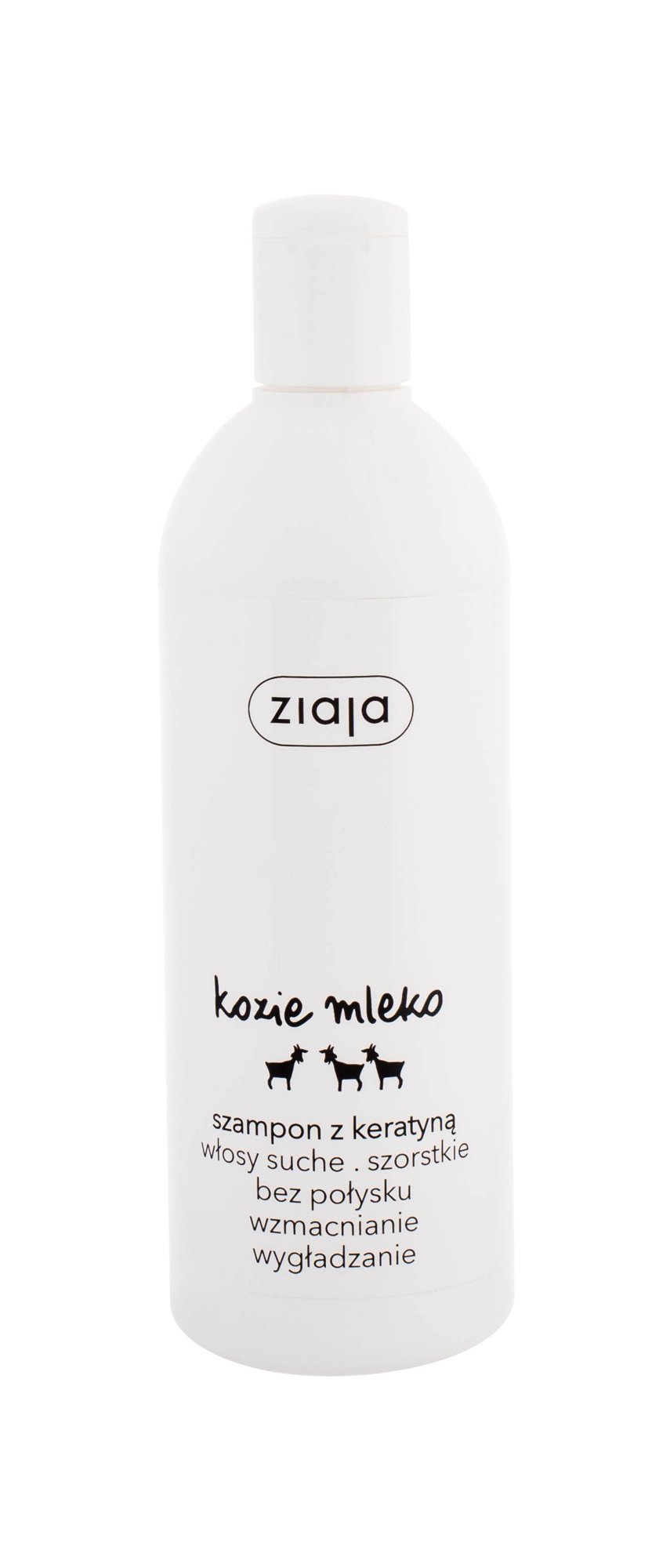 Wzmacniający szampon do włosów z keratyną **Ziaja Goat's Milk.** Dzięki zawartemu fitokeratynowi szampon pomaga regenerować i wygładzać zniszczone, suche i szorstkie włosy. Białka z koziego mleka celowo odbudowują uszkodzone miejsca na włóknie włosa, nadając włosom nawilżenie i odżywienie. Szampon jest delikatny dla skóry głowy. Lekka formuła nie obciąża włosów, dodając im objętości. Ułatwia rozczesywanie. Dzięki szamponowi z serii Goat's Milk Twoje włosy będą jedwabiście miękkie i lśniące. **Zastosowanie: **Nanieść na mokre włosy. Delikatnie wmasować, spienić. Następnie dokładnie spłukać. W razie potrzeby powtórzyć.
