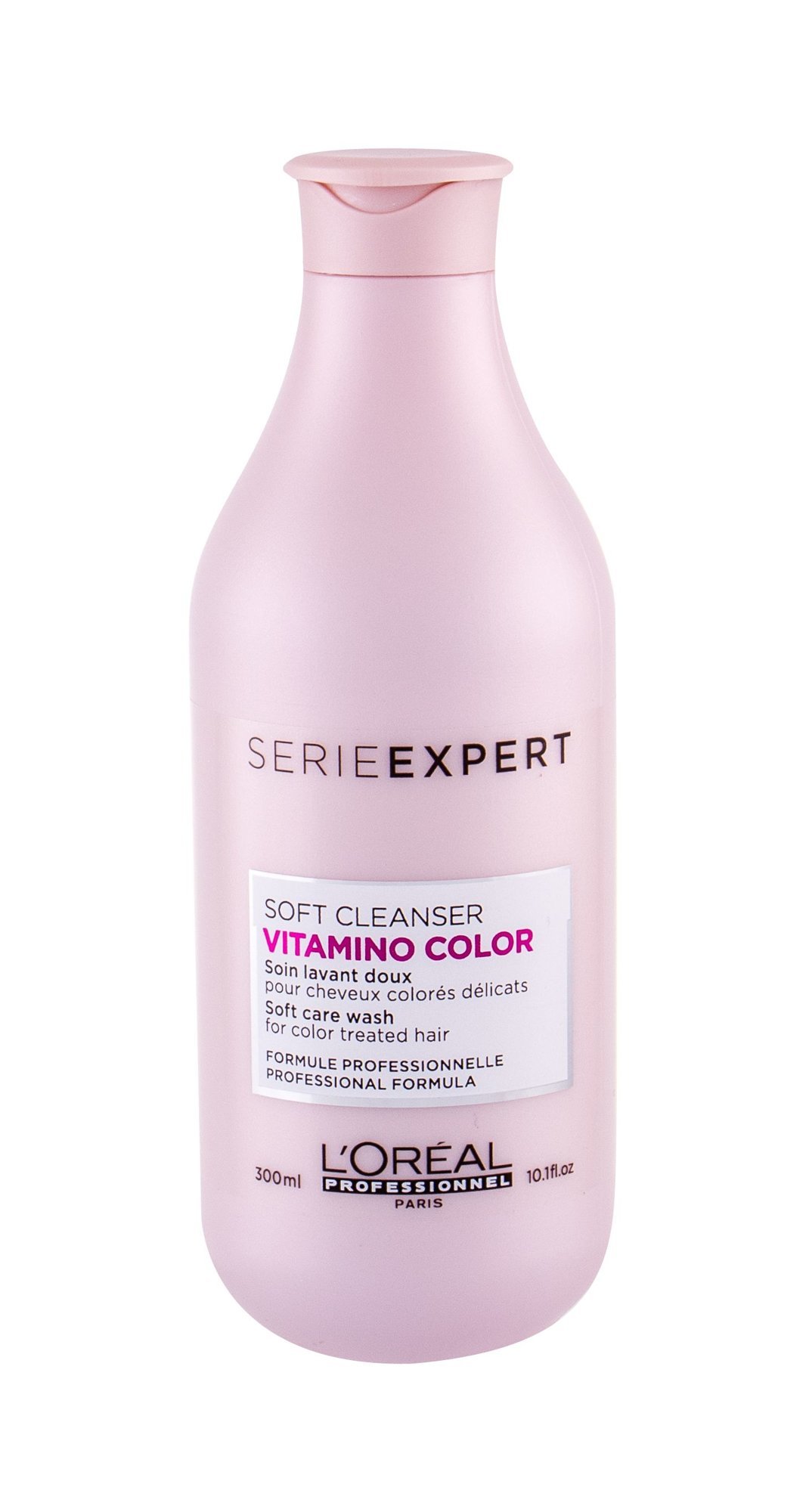 Jemné, bezsulfátové složení šamponu L´Oréal Paris Série Expert Vitamino Color Soft Cleanser zaručí vašim vlasům i vlasové pokožce šetrné mytí a zároveň ochrání barvu proti vymývání. Krémová konzistence se při kontaktu s vodou promění v pěnu, která o vlasy jemně pečuje, posiluje je, zanechává je lesklé a hebké na dotek.