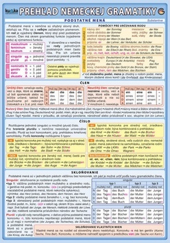Ucelený prehľad nemeckej gramatiky vhodný pre študentov základných aj stredných škôl. Členenie podľa slovných druhov. Obsahuje kapitoly slovosled hlavnej a vedľajšej vety, postavenie predmetov a príslovkových určení, zápor. Navyše strana s prehľadnou tabuľkou tvarov nepravidelných slovies. przeczytaj całość