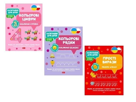 / Kaligrafia dla dzieci to seria dwujęzycznych zeszytów zawierających ćwiczenia wspomagające pierwsze próby pisania. Dziecko uczy się poprawnie trzymać ołówek, ćwiczy cierpliwość i dokładność. Poszczególne zeszyty utrwalają znajomość liter i cyfr, uczą samodzielności, stanowiąc doskonałe wsparcie procesu dydaktycznego. Dołączone arkusze naklejek dostarczają przy okazji świetnej zabawy!