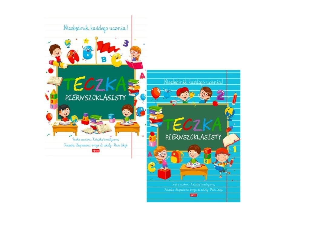 Teczka pierwszoklasisty na dobry start w szkole! Znajdziesz w niej: książeczkę z naklejkami o bezpieczeństwie w drodze do szkoły, książkę z bajkami, dwustronny plan lekcji oraz szablon z literkami, cyframi i kształtami. Teczki możesz używać cały rok - z łatwością pomieści wszystkie prace plastyczne, karty pracy i inne skarby pierwszoklasisty.
