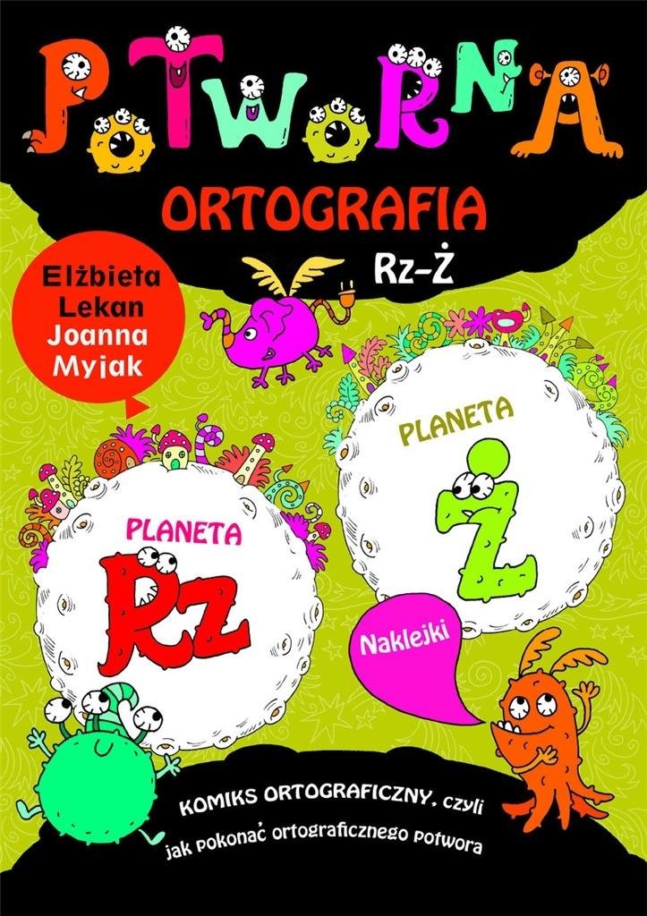 Seria komiksów podpowiadających, jak pokonać potwory ortograficzne. Przeczytaj krótkie teksty, podpisy pod ilustracjami, naklej odpowiednie nalepki i zostań pogromcą potworów. Ortografii nauczysz się, czy chcesz czy nie. Przed tobą wspaniała przygoda i mnóstwo wyzwań. przeczytaj całość