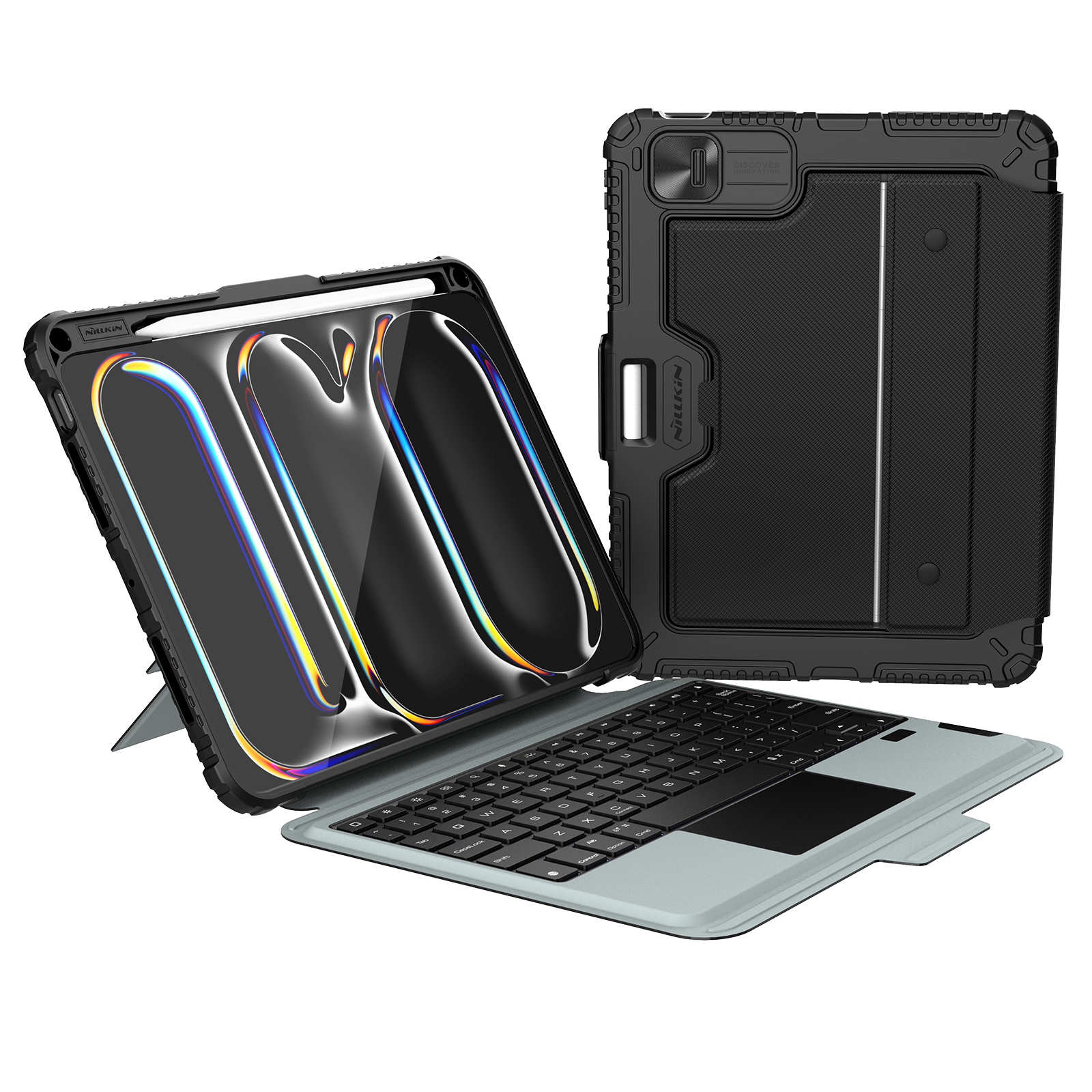 Nillkin Bumper Combo Keyboard Case je víceúčelový ochranný kryt tabletu s podsvícenou klávesnicí, slotem pro Apple Pencil s automatickým nabíjením a plynule nastavitelným úhlem tabletu.