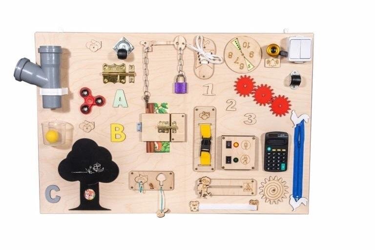 Tablica naturalna Wyposażenie tablicy: ELEKTRONIKA - PRZEJŚCIE DLA PIESZYCH: CZERWONE I ZIELONE ŚWIATŁOzamek błyskawicznydzwonek rowerowydwa rodzaje zasuwekbut ze sznurówką (nauka...