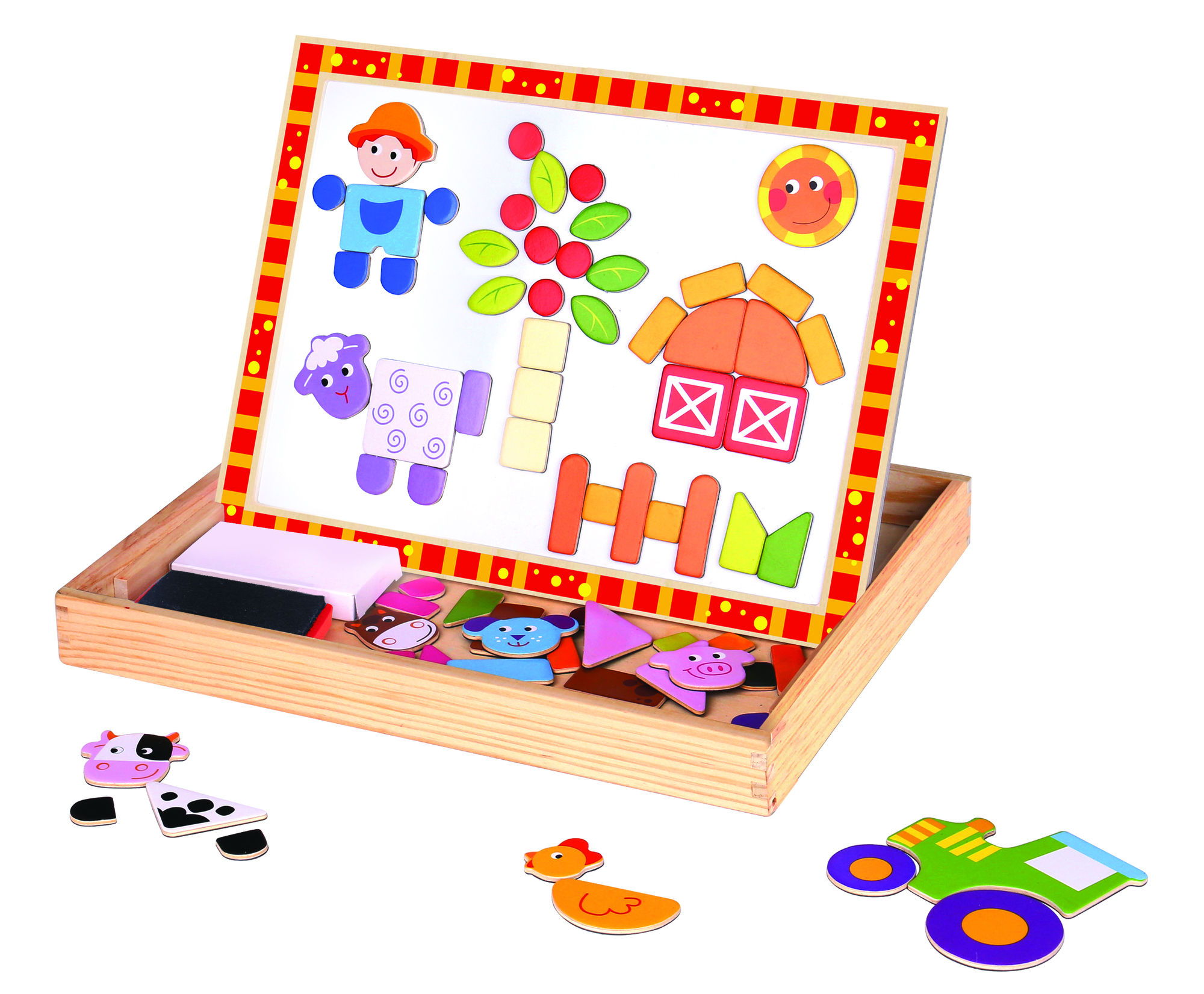 Magnetická tabuľka a puzzle FarmaMagnetické puzzle aj tabuľka v jednomDrevená magnetická tabuľka a puzzle Farma Tooky Toy je dokonalou multifunkčnou hračkou, ktorá obsahuje všetko potrebné na hodiny zábavy. Z jednej strany je tabuľka biela a deti na tomto podklade môžu skladať drevené puzzle s...