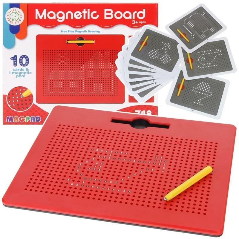 Tablica magnetyczna z kulkami przeznaczona do wspaniałej zabawy dla dzieci od 3 roku życia to doskonały sposób na nudę. Można rysować na niej jak na kartce papieru, wystarczy, że dziecko dotknie odpowiedniego otworu rysikiem, a kulka znajdująca się wewnątrz tablicy uniesie się i wypełni otwór....
