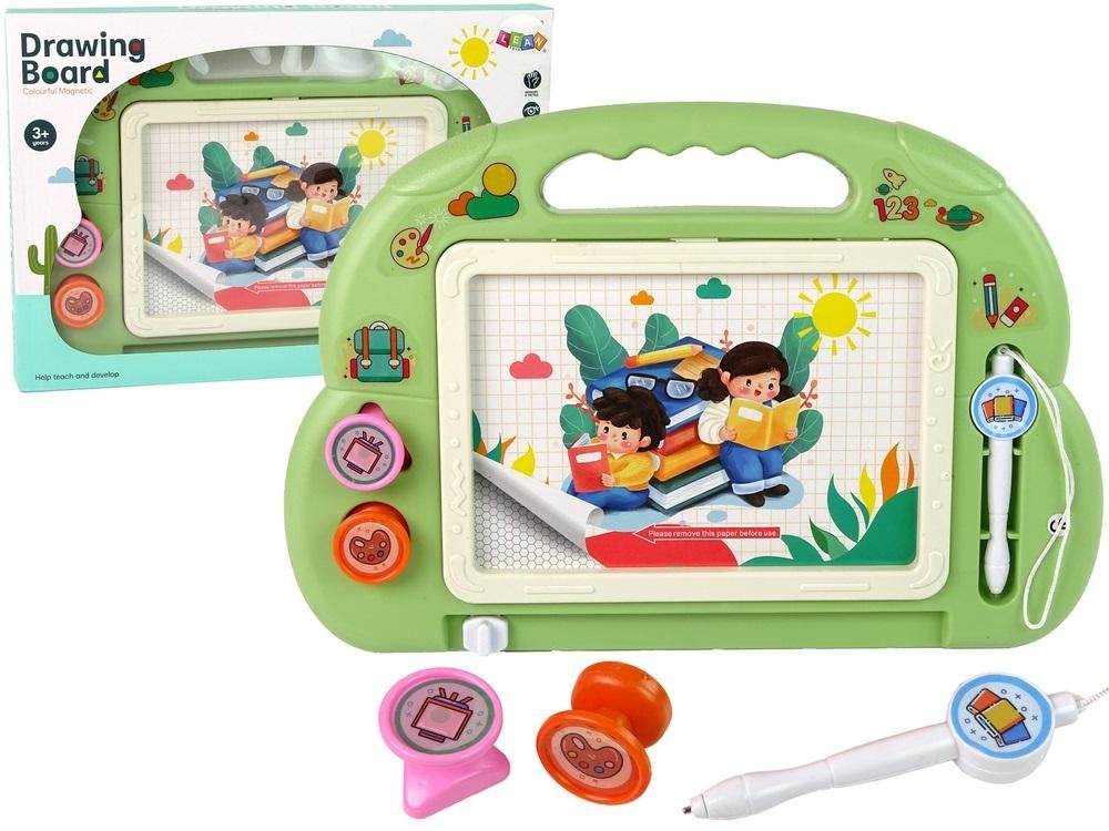 Tablica Magnetyczna Znikopis Pieczątki Zielona Tablica znikopis to ponadczasowa zabawka, idealna do rysowania oraz jako pomoc naukowa. Służy do pisania i rysowania znikających obrazków niezliczoną ilość razy ! Znikopis jest także świetną formą zarówno zabawy, jak i pomocą rozwijającą umiejętności...