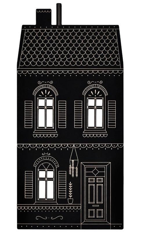 Wykonana ze sklejki brzozowej powleczonej farbą tablicową, która jest produkowana z poszanowaniem środowiska leśnego, zwierząt, roślin i ludzi. Okna posiadają otwory.