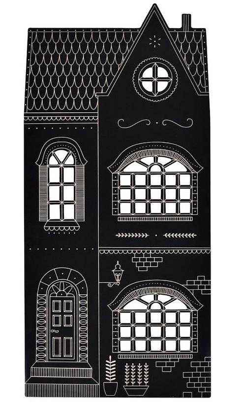 Wykonana ze sklejki brzozowej powleczonej farbą tablicową, która jest produkowana z poszanowaniem środowiska leśnego, zwierząt, roślin i ludzi. Okna posiadają otwory.