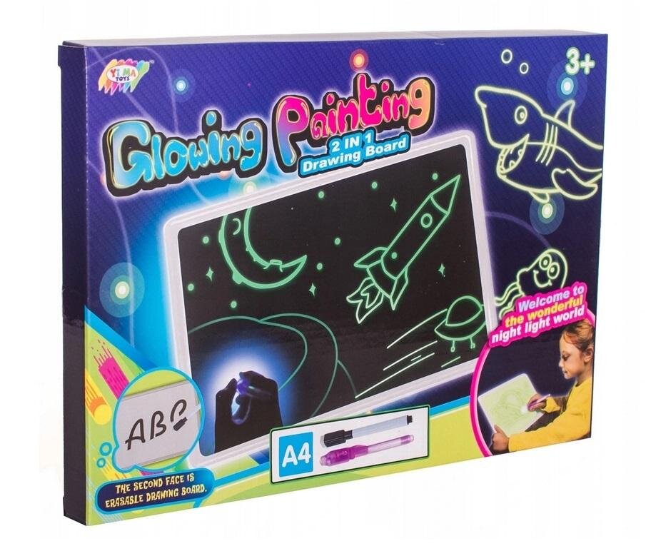 Tablica 2w1 , suchościeralna, malowanie światłem, (1 x ścieralne flamastry, 2 x szablony, 1 x świecący długopis) przeczytaj całość