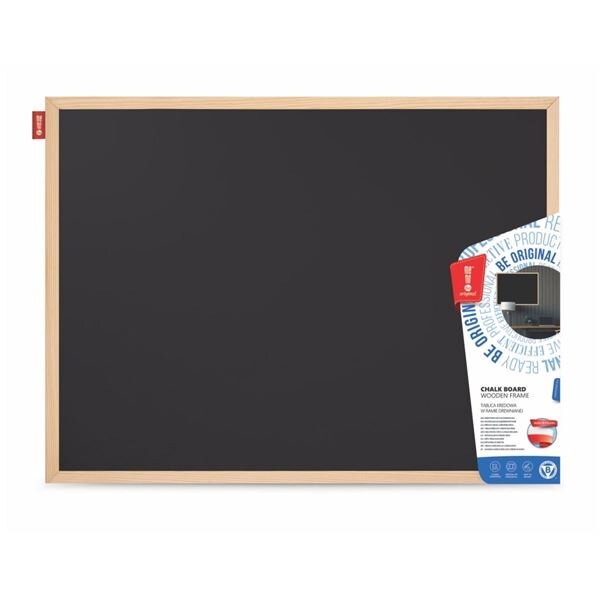 tablica z twardej płyty HDF z czarnym matowym wykończeniem powierzchni ; mniej więcej chropowata powierzchnia, odpowiednia do zapisywania tradycyjną kredą lub markerem kredowym ; lekka, estetyczna rama z litego drewna sosnowego ; możliwość montażu poziomego lub pionowego ; w zestawie komplet montażowy do ściany, gąbka do ścierania i 1 szt. kredy ; tablica nadaje się do użytku wewnętrznego ; grubość ramy: 16 mm ; tylna strona: płyta pilśniowa ; wymiary: 60x40 cm ;
