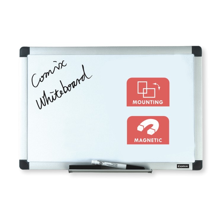 Magnetická tabule Comix BO9012 kvalitní bílá magnetická tabule s odolným povrchem z bílé lakované oceli vsazená do elegantního moderního rámu z eloxovaného hliníku. Vysoká odolnost povrchu tabule proti poškrábání je dosažena vypálením emailového laku... Magnetická tabule Comix BO9012 kvalitní...