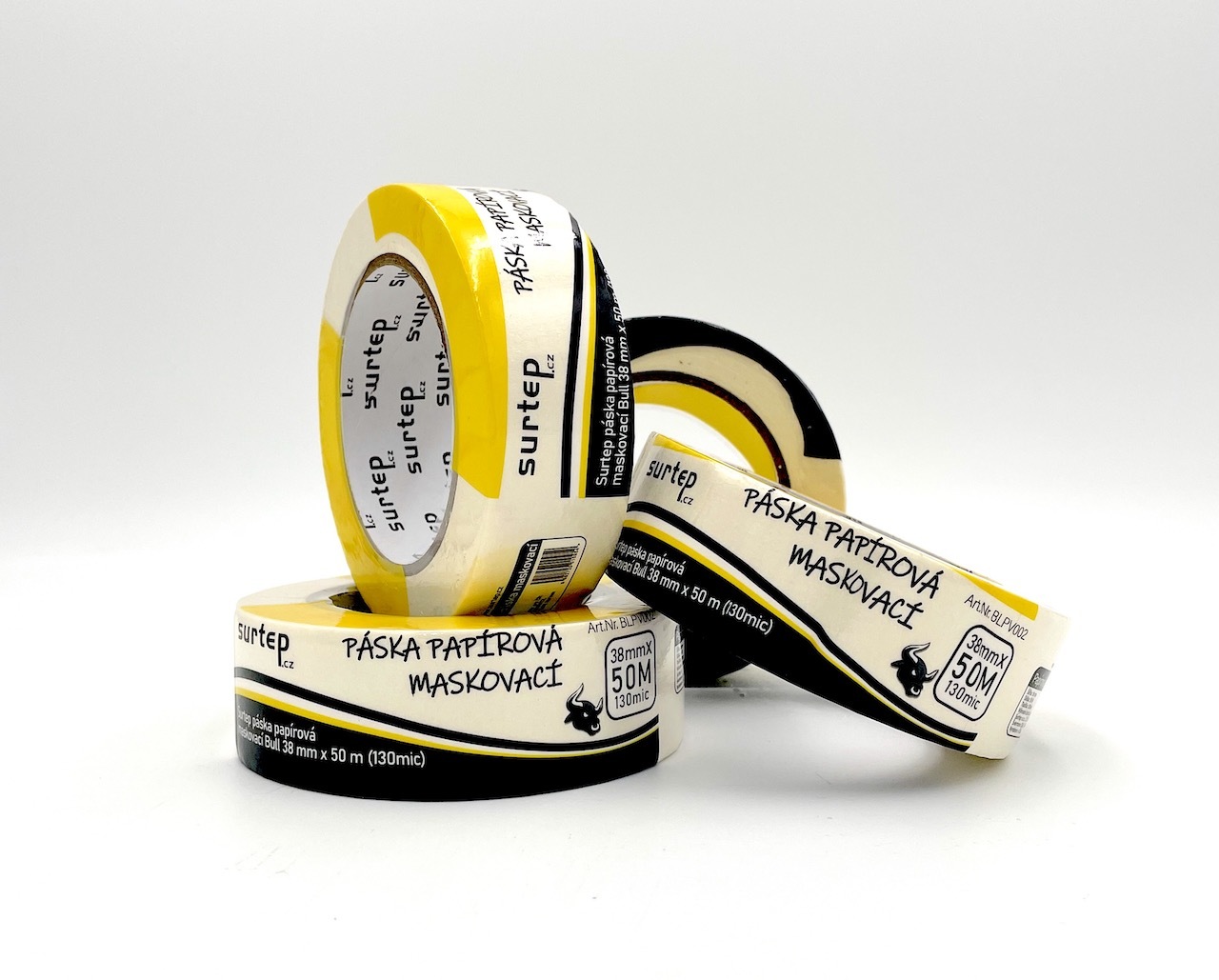 Surtep Páska papírová maskovací BullPáska je jemně krepovaná papírová krycí maskovací páska s vodním akrylovým lepidlem. Páska má širok&... Surtep Páska papírová maskovací BullPáska je jemně krepovaná papírová krycí maskovací páska s vodním akrylovým lepidlem. Páska má široké uplatnění ve...