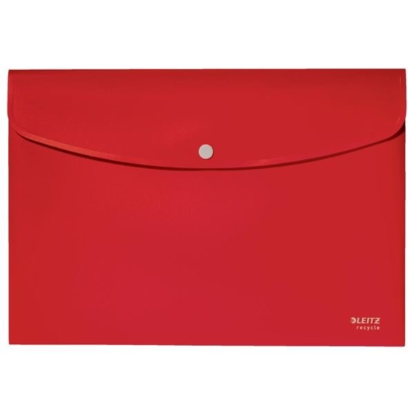 Teczki z napisem "Recycle" w kolorze czerwonym to idealne rozwiązanie do bezpiecznego przechowywania i przenoszenia Twoich dokumentów. Dzięki zastosowaniu 80% recyklowanego plastiku (PCR) oraz ekologicznej certyfikacji Blue Angel dbasz o środowisko i wspierasz zrównoważony rozwój.