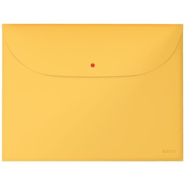 Produkty Leitz Cosy wprowadzają do Twojego miejsca pracy styl dzięki minimalistycznemu designowi, matowej powierzchni i ciepłej palecie kolorów Teczki z zatrzaskiem wykonane są z nieprzezroczystego, nadającego się do recyklingu materiału PP o grubości 0,20 mm, zapewniającego wysoką nośność i długotrwałe użytkowanie Idealne do organizacji i transportu dokumentów zawierających dane wrażliwe (do formatu A4) 1 kieszeń z zatrzaskiem, 1 kieszeń otwarta - szybki dostęp Pojemność: 50 arkuszy (80 g/m2) Kolor: matowo żółty