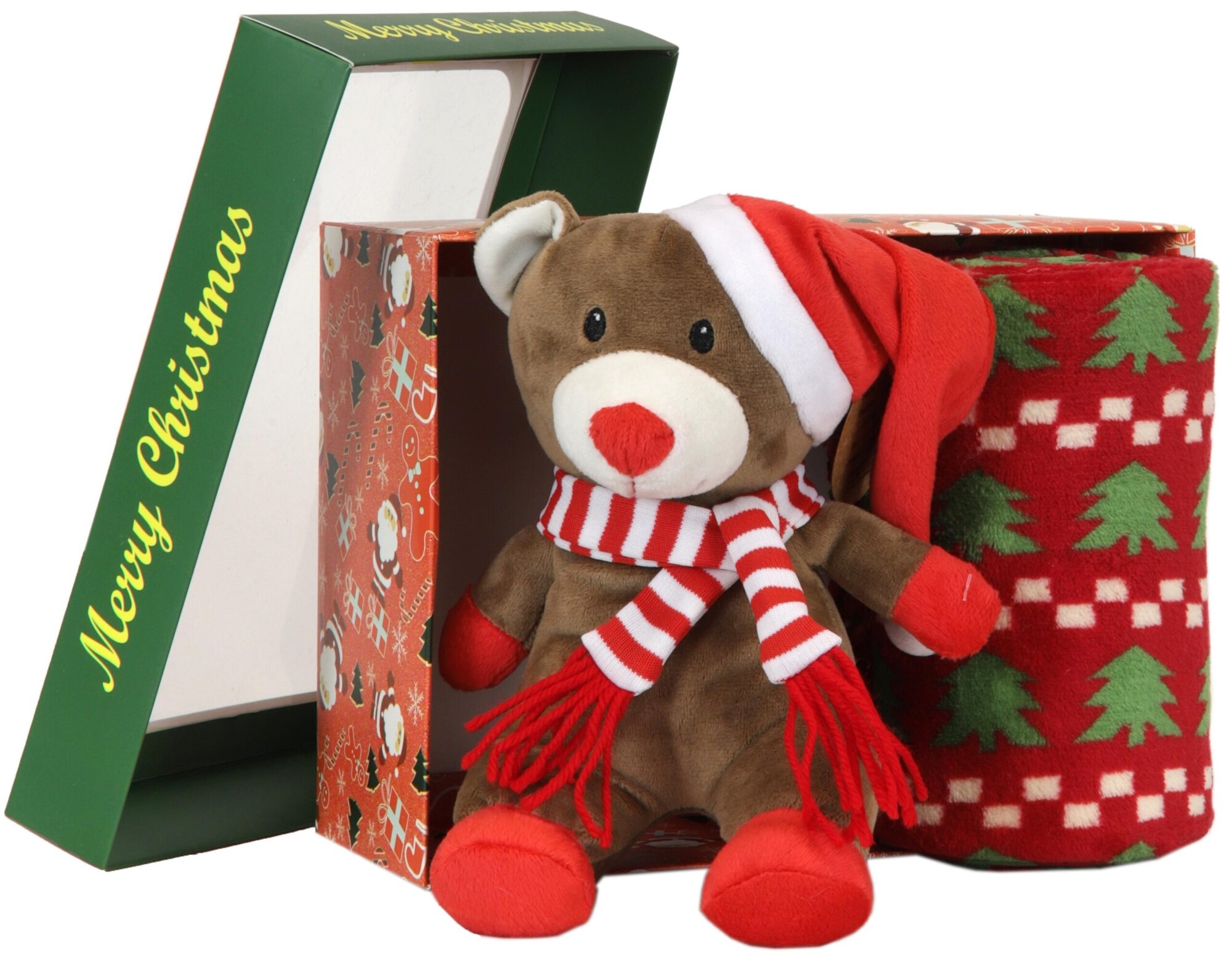 Vánoční plyšový medvídek s dekou v dárkové krabičce