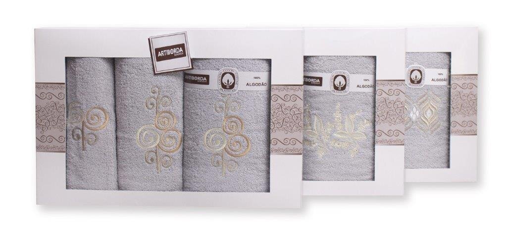 RĘCZNIK KPL. ARTI 3 SZT. /30X50/50X100/70X140/ FROTTE HAFT SZARY JASNY 400G.