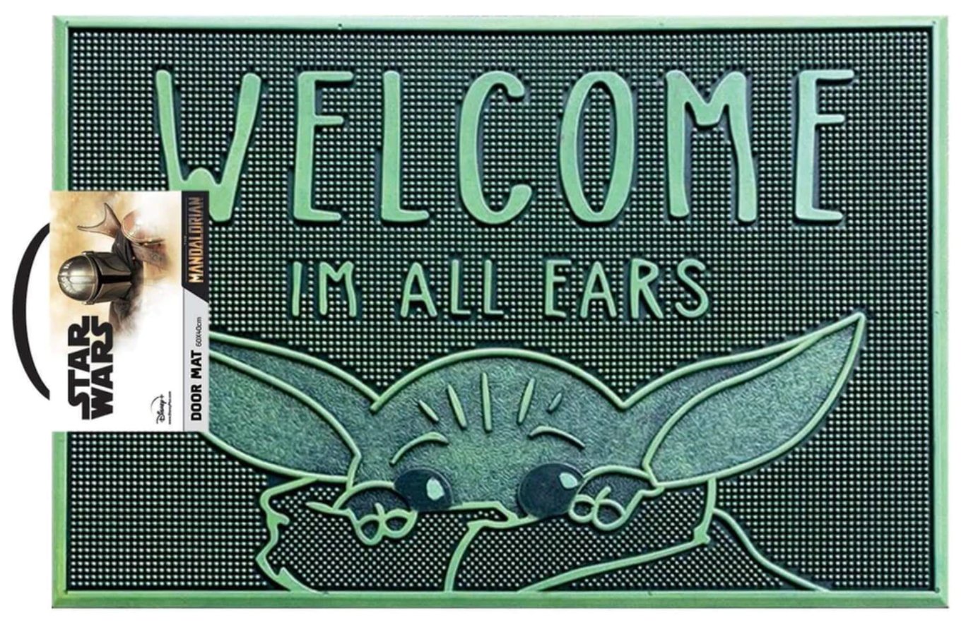 Hezká gumová rohožka s Baby Yodou aka Grogu z oblíbeného sci-fi seriálu The Mandalorian dá každému na vědomí, že vstupuje do příbytku věrného fanouška Star Wars - Hvězdných válek. Na rohožce stojí nápis Welcome I m All Ears - Vítejte, jsem jedno ucho. Materiál: pryž przeczytaj całość