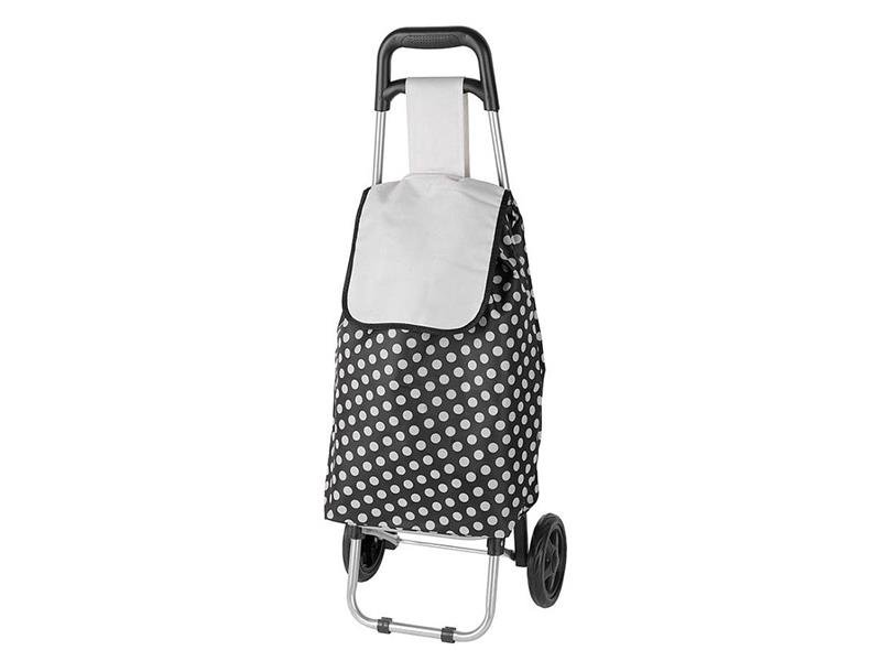 Nákupní vozík v elegantním designu s kolečky a pohodlnou rukojetí využijete na každodenní nákupy.Oceníte boční kapsu na zip a stahovací vrchní část.Technické parametry:- Maximální nosnost: 20 kg- Rozměry: 35 x 30 x 94 cm przeczytaj całość