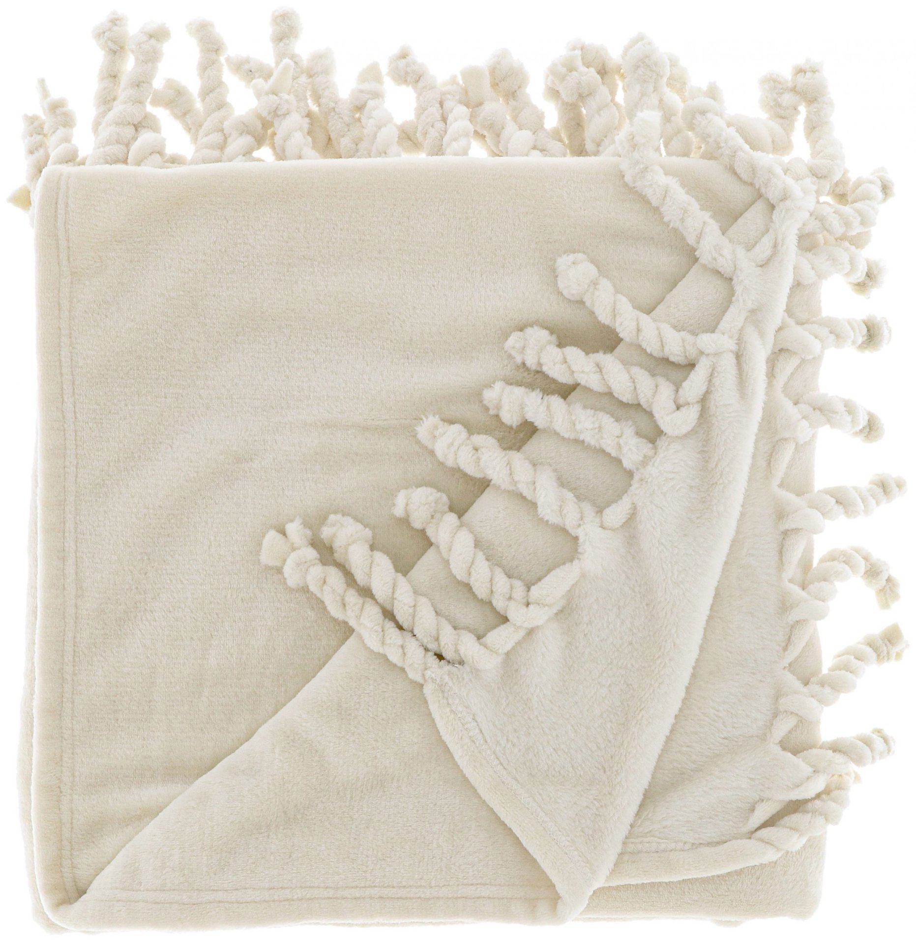 Hřejivý pléd s třásněmi Lieke slonová kost