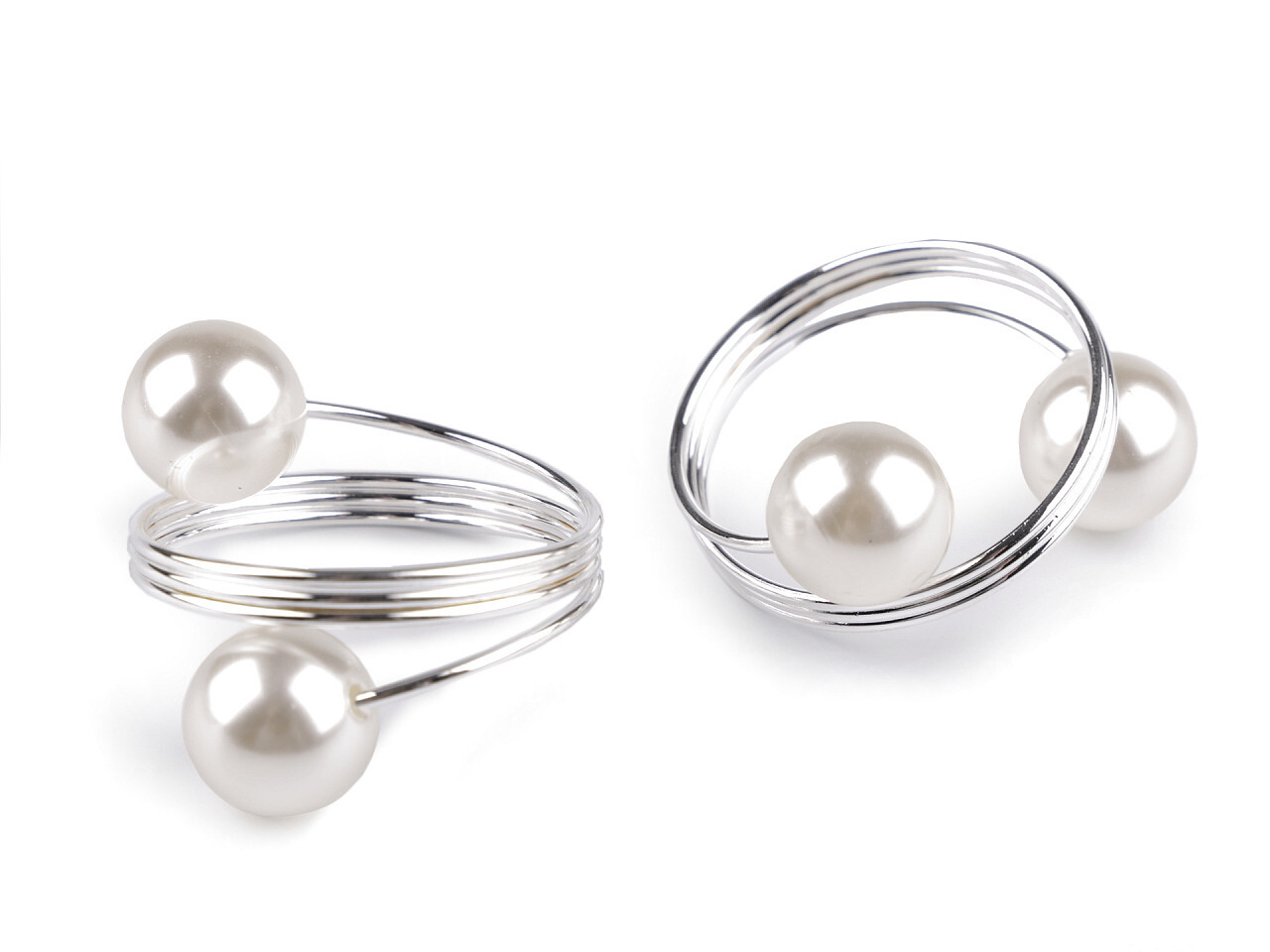 Kroužek na ubrousek s perlou - 6 ks - stříbrná