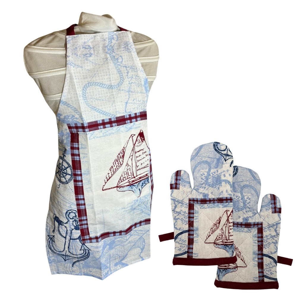 HOME ELEMENTS Dětská sada – zástěra a chňapka 50*70 + 10*22 cm, Plachetnice