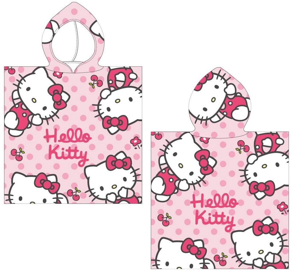 Produkt oficjalny - dziecięcy ręcznik-ponczo z katalogu produktów upominkowych z grafiką i licencją popularnej animowanej kotki Hello Kitty.