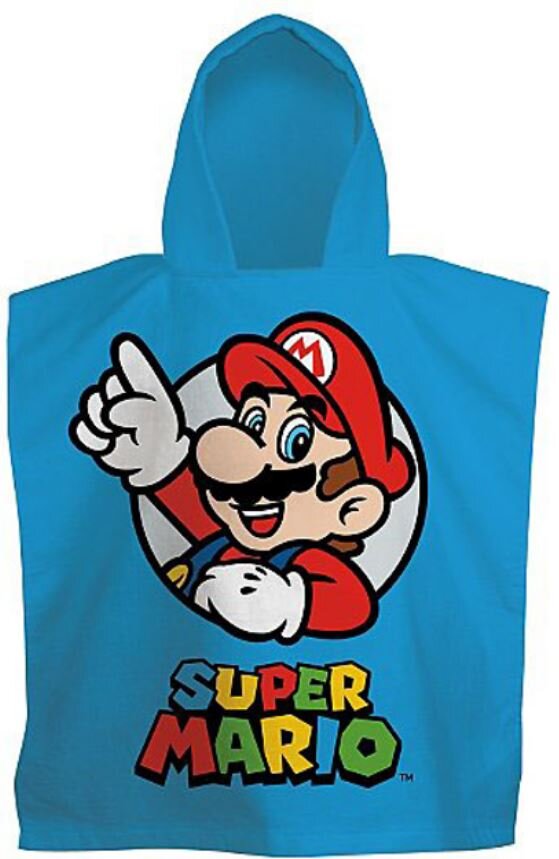 Oficjalny produkt - dziecięcy ręcznik-ponczo z katalogu produktów upominkowych z grafiką i licencją popularnej serii gier wideo Super Mario.