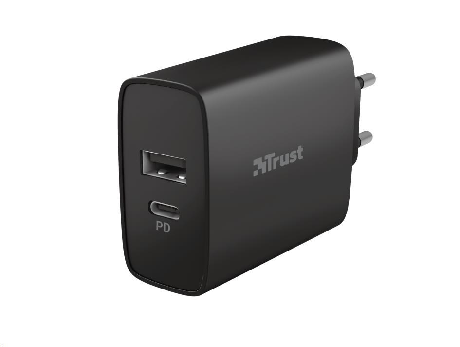 Ultra-fast charger with USB and USB-C port to charge two devices simultaneously at the highest possible speed