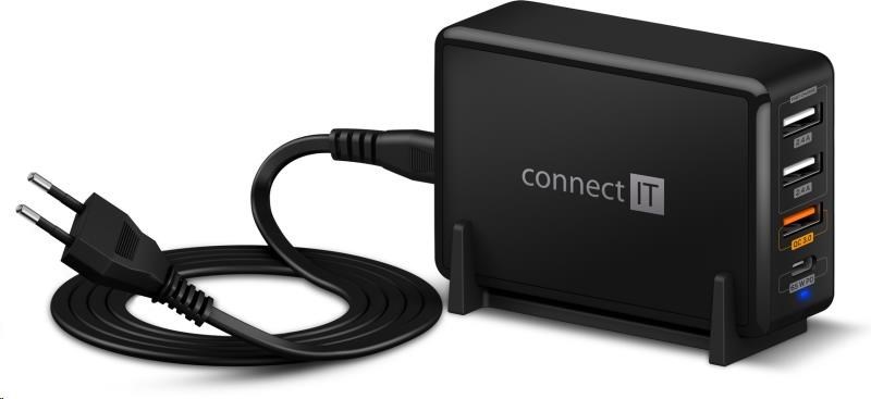CONNECT IT Fast Charge nabíjecí adaptér 3xUSB-A + 1xUSB-C, QC, 65W PD, černý